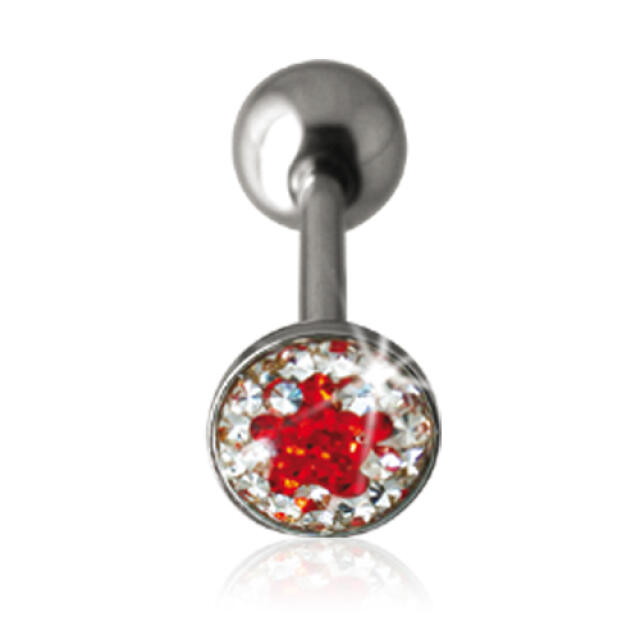 316L Chirurgenstahl Zungenpiercing 1.6x16mm Stablänge, flacher juwellierter Aufsatz (Sternmotiv in amethyst) mit klaren Kristallen, Schmucksteine sind mit Epoxidmasse versiegelt, kleine Kugel ist abschraubbar