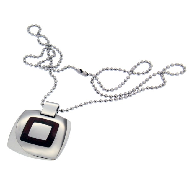 Anhänger aus Materialmix: Edelstahl und Holz quadratisch