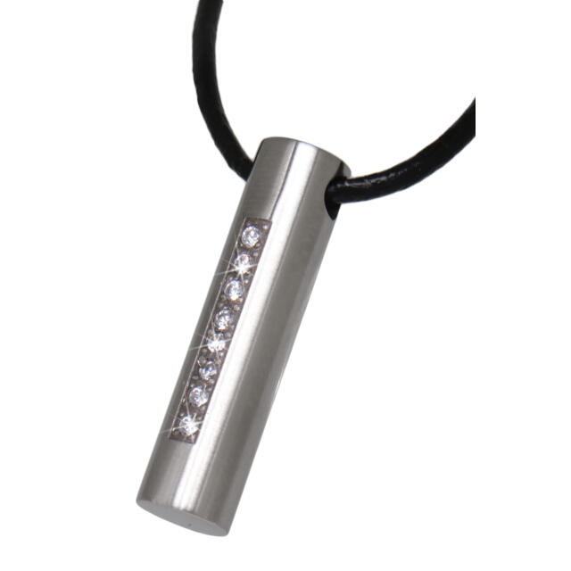 Anhänger Zylinder rund aus Edelstahl mit Kristallen und Wunschgravur