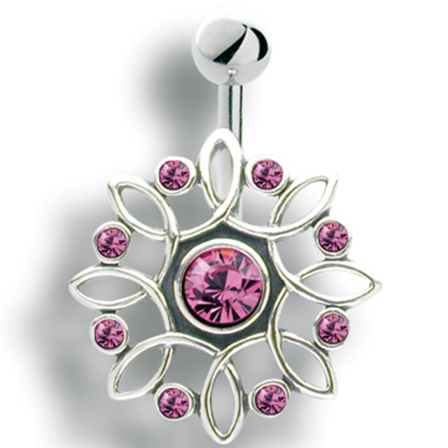 Bauchnabelpiercing mit filigranem Design aus 925 Silber und Kristallen