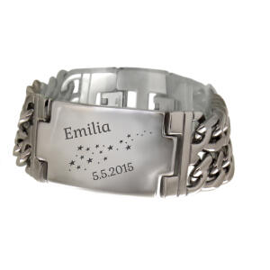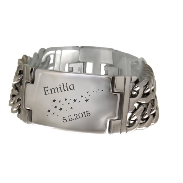 Breites doppelreihiges Edelstahlarmband poliert, mit Verlängerung, Länge 19.5-21.5cm und Wunschgravur