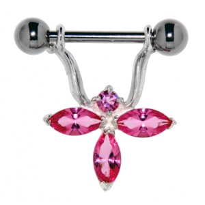 Brustwarze Piercing aus 925 Sterling Silber, filigranes Motiv, mit passender 316L Hantel, rose