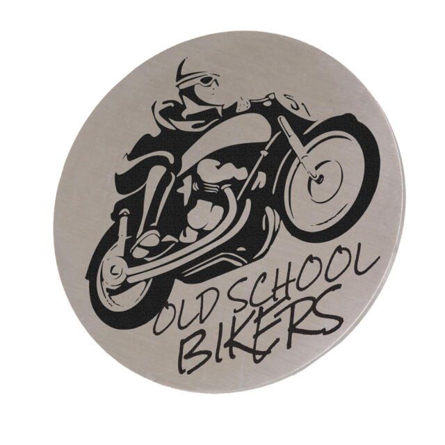 Gravurartikel: BIKER PATCH aus mattiertem Edelstahl mit Ihrer Gravur, rund