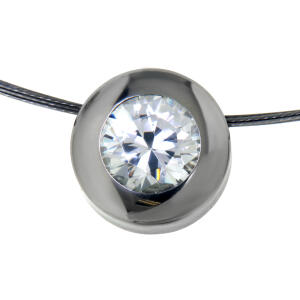 Kettenanhänger aus Edelstahl rund mit Zirkonie