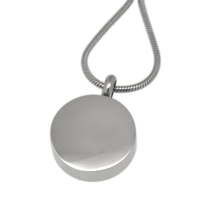 Ascheschmuck Anhänger Urne Rund aus Edelstahl Hochglanz poliert