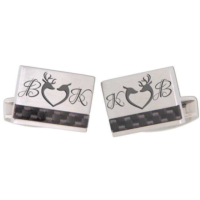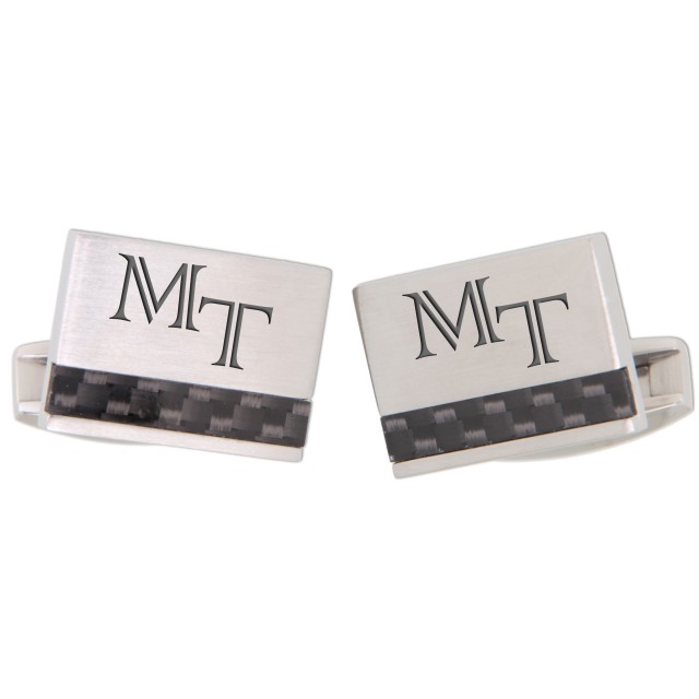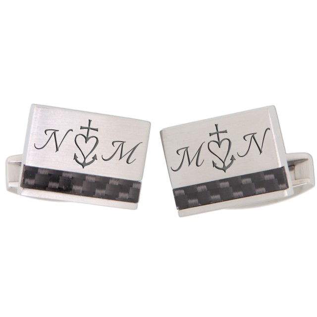 Manschettenknöpfe aus Edelstahl mit Carbon-Einlage an der Unterseite und Gravur