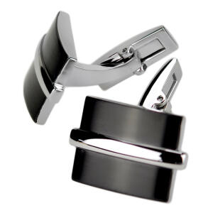 Rechteckige Manschettenknöpfe für die Hochzeit aus Edelstahl in der Größe 21x15mm. Die Manschettenknöpfe für die Hochzeit sind teilweise mit mattem schwarzen PVD beschichtet und weisen minimale Mängel auf. Die Lieferung erfolgt in einer Geschenkbox.