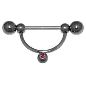 Piercing Brust Stab 15mm lang, das Design mit einem Kristall lässt knapp 12mm Platz frei für die Brustwarze.