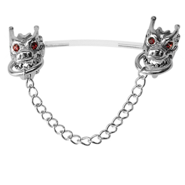 PTFE Nipple Brustwarzen Piercing DRACHE mit Aqua-Augen, 925 Sterling Silber (Barbell Hantelkann nach Belieben gekürzt werden)