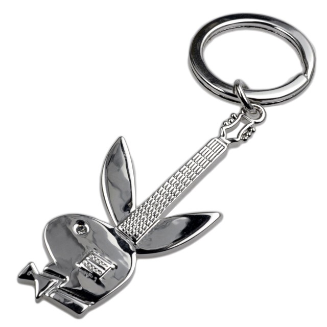 PLAYBOY Schlüsselanhänger versilbert mit Playboyhase als Gitarre