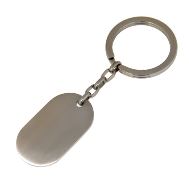 Rechteckiger Schlüsselanhänger aus Edelstahl mit Ihrer Wunschgravur, Stil Erkennungsmarke, mattiert