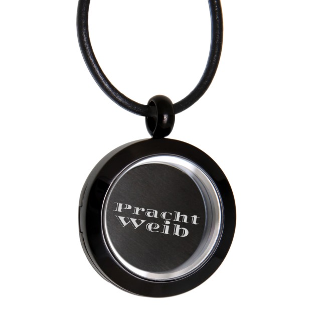 Runder Medaillon Anhänger aus Edelstahl PVD schwarz beschichtet poliert mit individueller Gravur