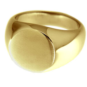 Siegelring Edelstahl, PVD gold, runde MATTIERTE Fläche, 15mm Durchmesser, die übrigen Oberfläche des RIngs ist hochglanzpoliert. Innendurchmesser 18mm. Wir liefern den Artikel in einer Geschenkverpackung. Der Ring eignet sich zum Anbringen einer Gravur, Sie können ihn selbst in unserem Webshop desginen. Sie finden ihn unter der Artikel-Nummer LAS-SGS-GO.