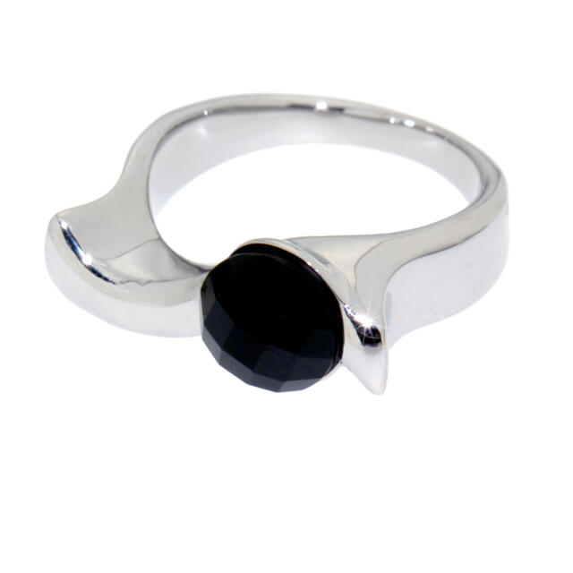 SONDERANGEBOT Ring aus Edelstahl mit schwarzem facettierten Stein in schwarz, Ringgröße 18mm