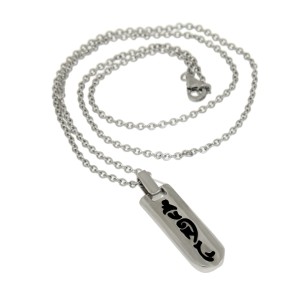 Stahlkettenanhänger länglich mit Schriftzeichen und 50cm langer Kette