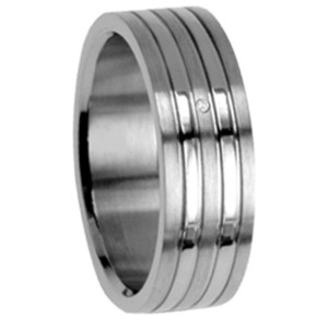 Titan Ring mit Diamant 4 rillen mattiert & poliert
