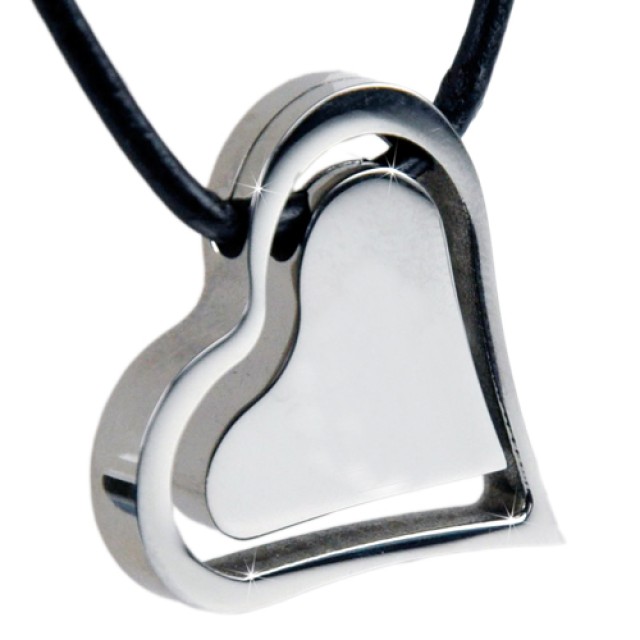 Zweiteiliger Herz Anhänger aus Edelstahl, ein kleines Herz beweglich innerhalb einer grösseren ausgestanzten Herform - sie finden den Artikel auch unter der Rubrik Schmuck Gravur